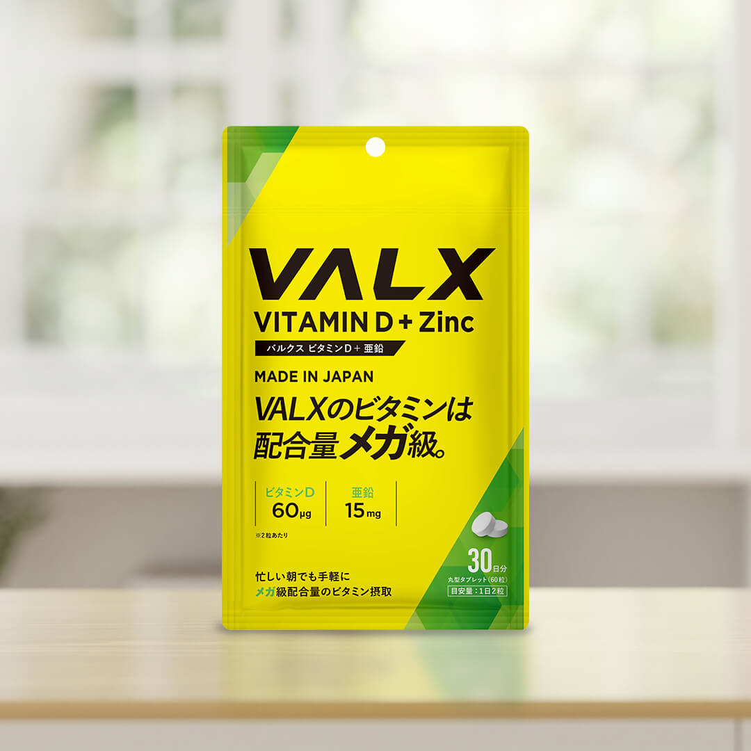 『VALX ビタミンD+亜鉛』は、2粒あたりビタミンDが60μg、亜鉛が15mg配合されています。品質管理にもこだわっており、先述の『VALXクレアチンパウダー』と同様にGMP工場で生産されているサプリメント。着色料・保存料は不使用のため、なるべく余計な添加物などを摂取したくない人にもオススメです。1日2粒を目安に、水などと一緒に飲んでください。