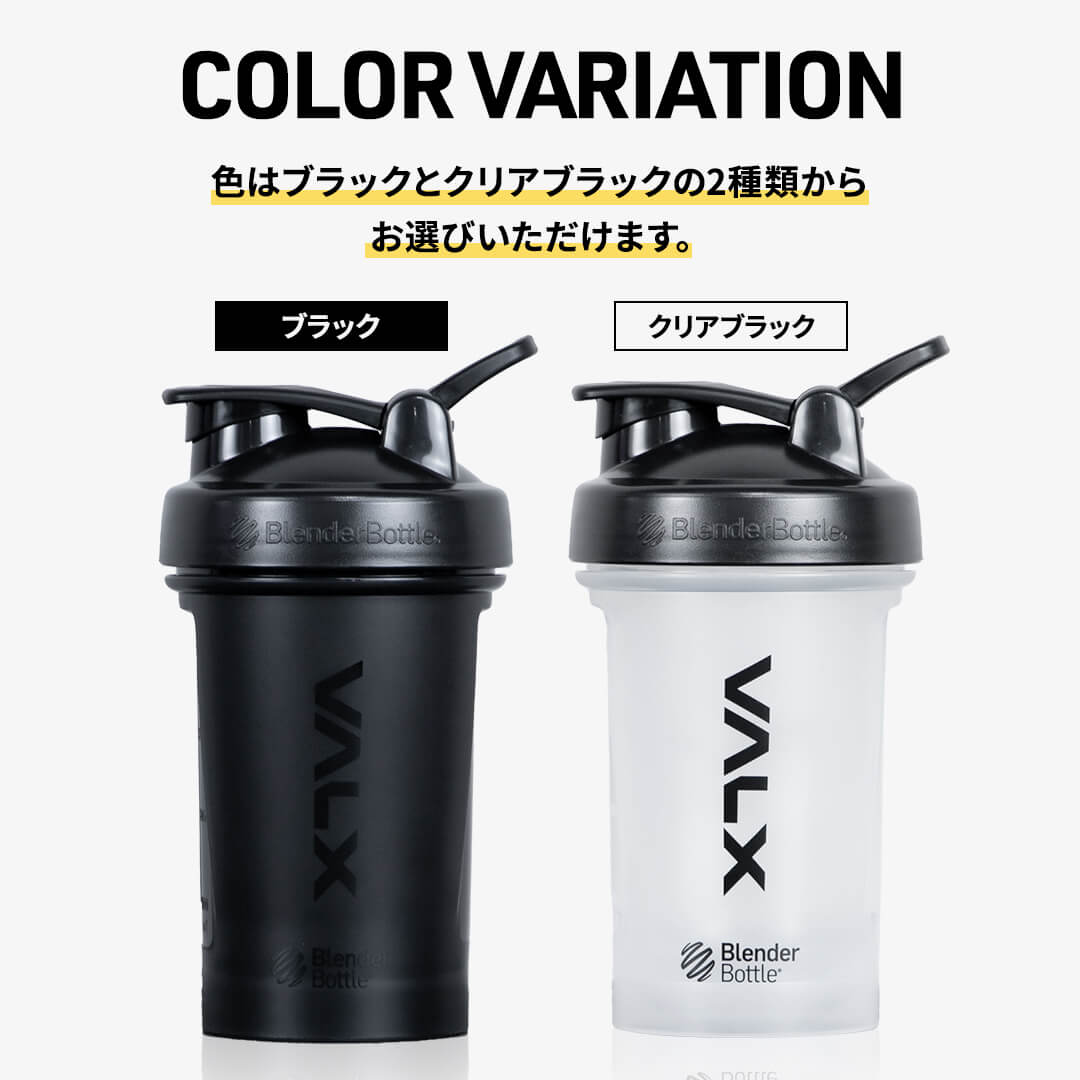 VALXのシェイカーボトルは、BlenderBottleとのコラボレーション商品です。最大容量は、V2と20ozは600mL、Pro45は大容量の1300mLとなっており、トレーニング中の時間や強度に合わせてお選びいただけます。しっかりとした作りで、一度にたくさんの量をミキサーできると評判です。